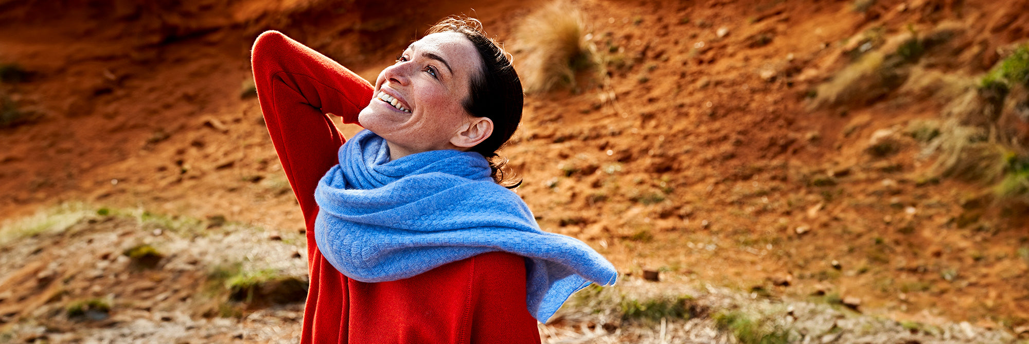Das Edelhaar der Kaschmirziege ist mit einem Durchmesser von nur 15 bis 19 Mikrometern dermaßen fein, dass es exzellente Wärmerückhaltung ermöglicht und zugleich federleicht ist. Diese natürliche Wärme lässt sich spüren, wenn man mit der Hand über die Wolle streicht. Es eignet sich damit ideal als Material für exklusive Schals und Tücher.